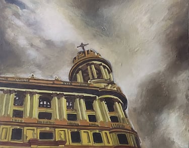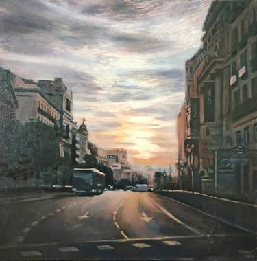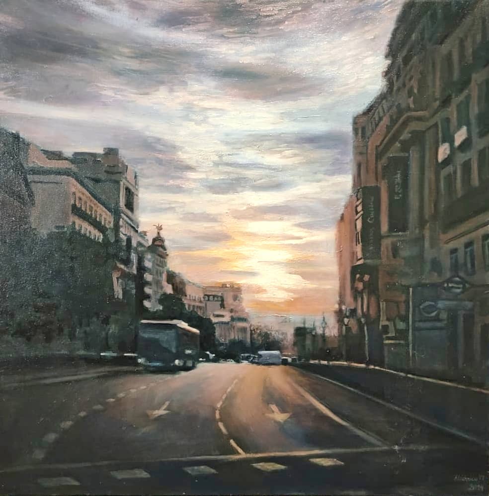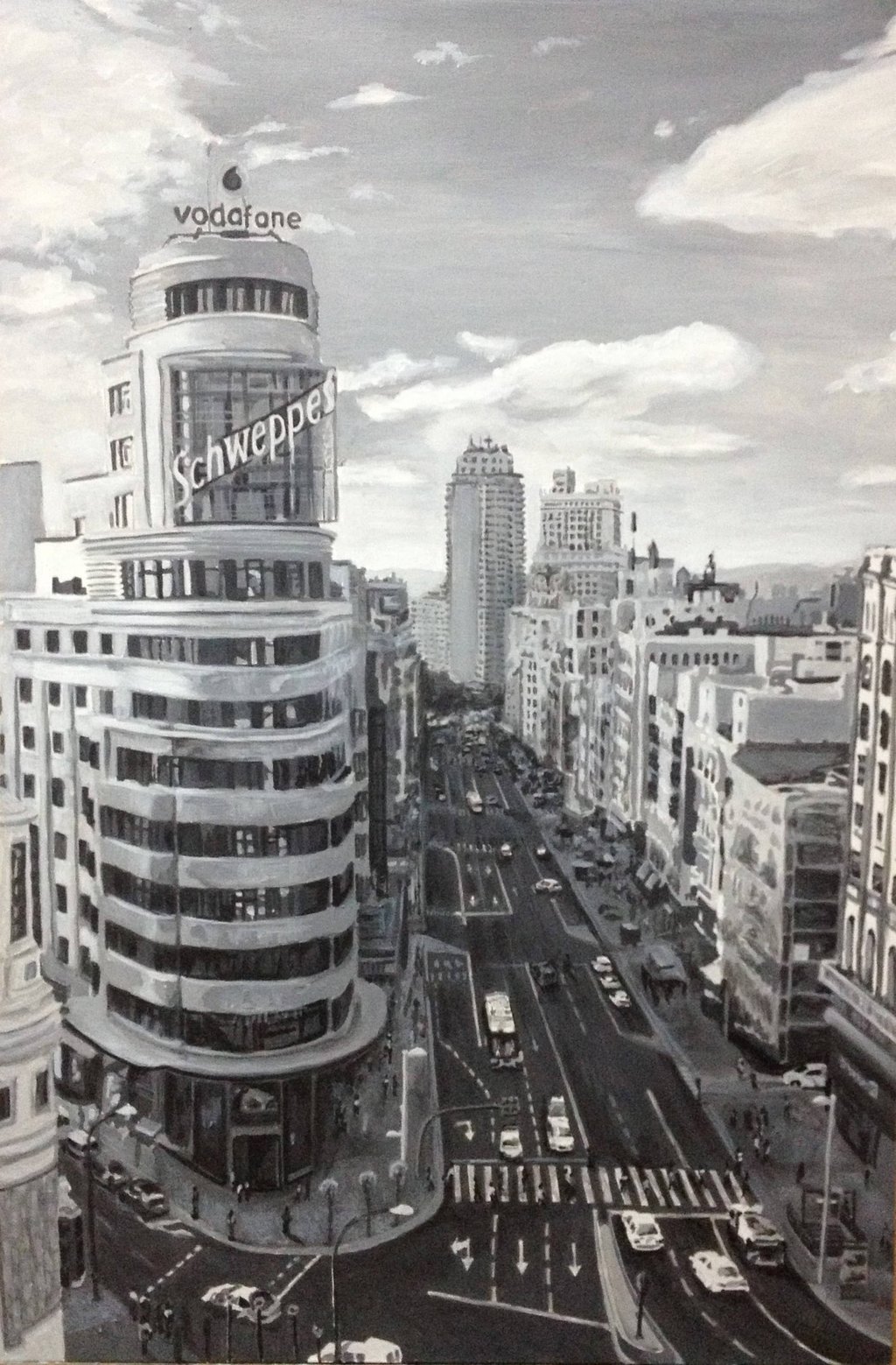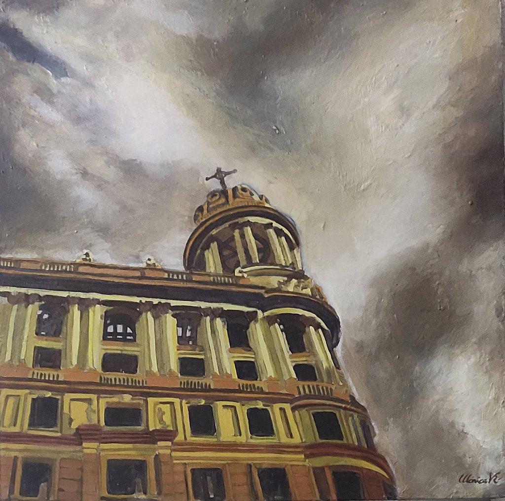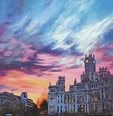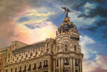 Esta es parte de la serie que realicé en su día sobre edificios de Madrid. Es de las primeras creadas con temática concreta y se expuso en varios centros culturales y locales de Madrid. De ella también salieron encargos personalizados. Si echas de menos algún edificio, calle o paisaje urbano en particular, puedes pedirme información y te facilito los pasos necesarios para realizarlo a tu gusto.